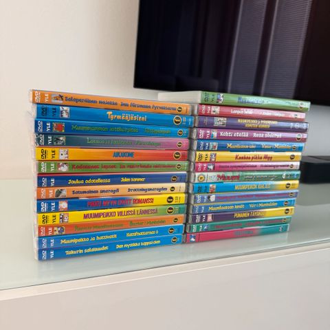 Myynnissä 26kpl vaihtelevan kuntoisia muumi DVD:eitä. Kaikki DVD:eiden jaksot on testattu toimiviksi. DVD:t on hinnoiteltu kunnon mukaan: