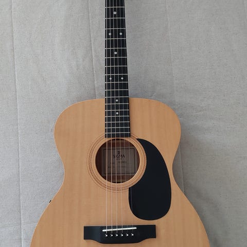 Myydään Sigma 00M-1S-SB teräskielinen akustinen kitara. 00-koko, kokopuinen kuusikansi, sivut ja pohja mahonkia, satula ja talla luuta, micarta otelauta, kaulan leveys satulan kohdalta 42,9mm, skaala 645mm.