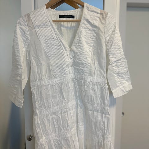 Calvin Klein Jeans -merkkinen naisten kesämekko. Koko S. Mekko on hihaton ja suoralinjainen, ja siinä on pyöreä pääntie. Väri on valkoinen, edessä on painettu CK-logo ja teksti. Materiaali on puuvillaa, joka tekee mekosta kevyen ja hengittävän. Sopii arkikäyttöön ja vapaa-aikaan lämpimällä säällä.