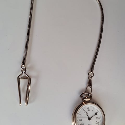 kullanvärinen kvartsikoneistolla varustettu taskukello. Paristo loppunut, muuten toimii.