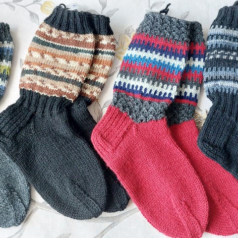 Uudet villasukat. Värit musta ja valkoinen. Jalkaterän pituus 25,5cm venyttämättä, venyy 32cm asti. Varren pituus nilkasta mitattuna on 18cm. Löysähköä neulosta, joustaa eikä ole jäykkää.