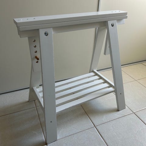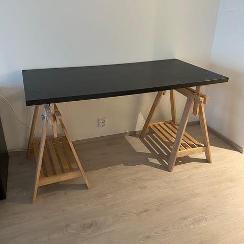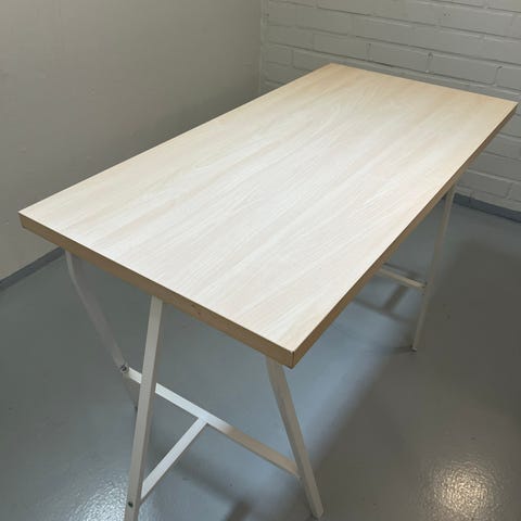 Myydään Erittäin hyvässä kunnossa olevat pukkijalat ja irrallinen pöytälevy. Pöytälevy moitteettomassa kunnossa. Pöytälevyn mitat 150cm x 75cm.