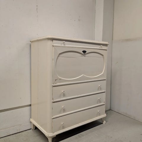 Tämä upea antiikki kirjoituslipasto etsii uutta kotia. Kaappia aikanaan kunnostettu. Avain tallessa ja klaffin lukitus toimii. Ajan patinaa pinnassa sekä lakka paikka paikoin kulunut. Rakenteeltaan tukeva. Ei hajuja. Klaffin luukussa ei ole avattuna tukea. Koristeet messinkiä.