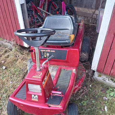 Murray ajoleikkuri ilman leikkuupöytää kaasarin putsauksella ja uudella akulla ajokuntoinen kaasaribensalla lähtee tällähetkellä käyntiin.