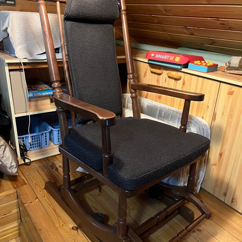 Siistissä kunnossa ja ei muuta vikaa kuin toisessa tuolissa näkyvät pienet ratkeamat. Vain nouto