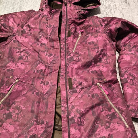 Icepeak naisten laskettelutakki, koko 44. Violetti-harmaa väritys, materiaali polyesteri. Takissa on irrotettava huppu, vetoketjukiinnitys ja useita taskuja ulkopuolella ja sisäpuolella. Sopii yleiseen ulkoiluun ja arjen käyttöön viileämpiin säihin.