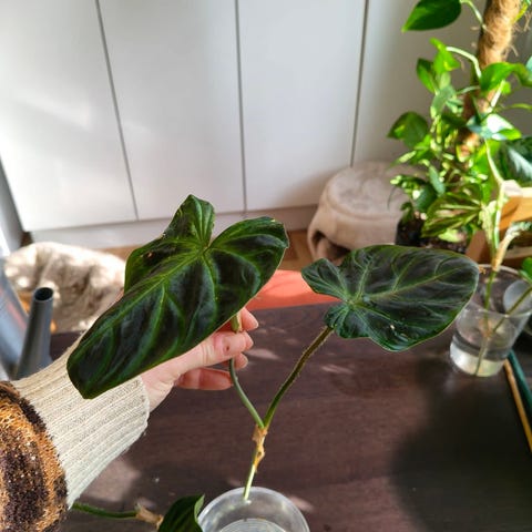Kuvan kasvista pistokas, yksi pistokas on 2 lehdellä.