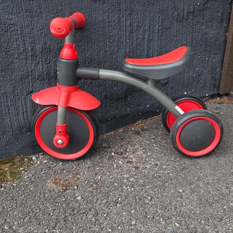 Xtreme 12" potkupyörä lapsille. Pyörässä on 12 tuuman muovivanteiset renkaat ja kiinteät, ilmakumittomat renkaat. Rungon väri on punainen ja satula sekä renkaat ovat valkoiset. Potkupyörä soveltuu tasapainon harjoitteluun pienille lapsille ennen polkupyörään siirtymistä.