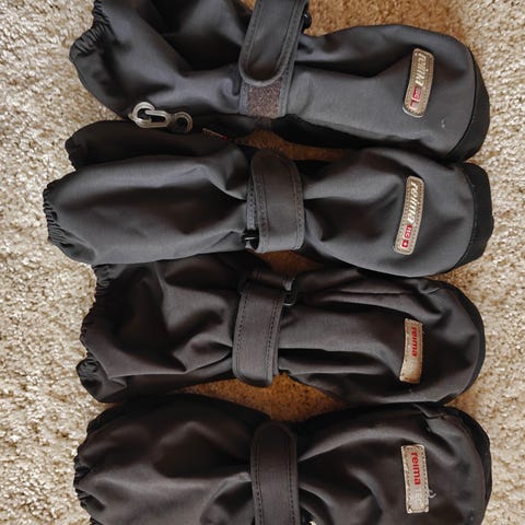 Vähän vanhemmat rukkaset. Kahdella lapsella käytetty. Likaiset mutta ehjät vielä. Mahdollisesti kerran pesty