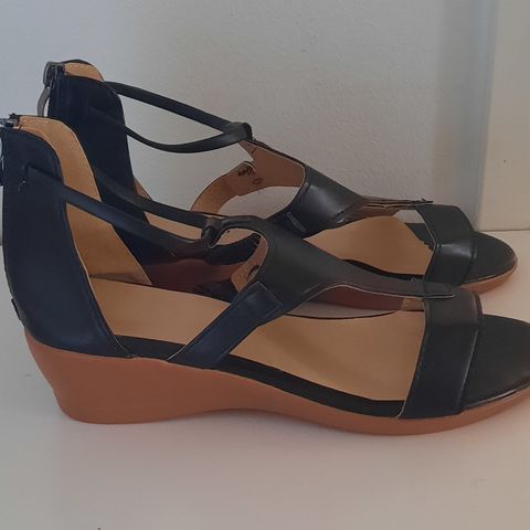 Myydään käyttämättä jääneet kiilapohjasandaalit. Ovat siis uudet. Ruskea nahka, solkikiinnitys koko 38.