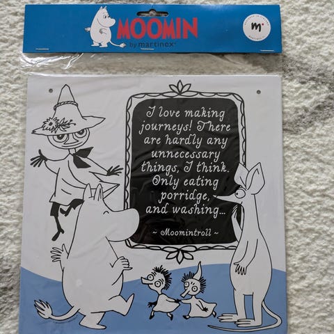 Kestävä metallirunko ja kauniit Moomin-kuvioinnit.