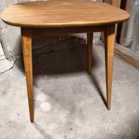 Valkoinen puinen pöytä.