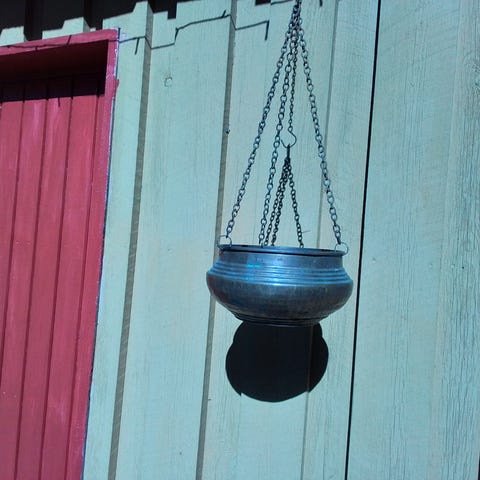 Siisti ja hyväkuntoinen amppeli, pituus kiinnityslangasta hapsuihin 97cm. Mukaan saa halutessaan tekokukkasen ja ruukun, jotka mulla amppelissa olleet (kuva 2).