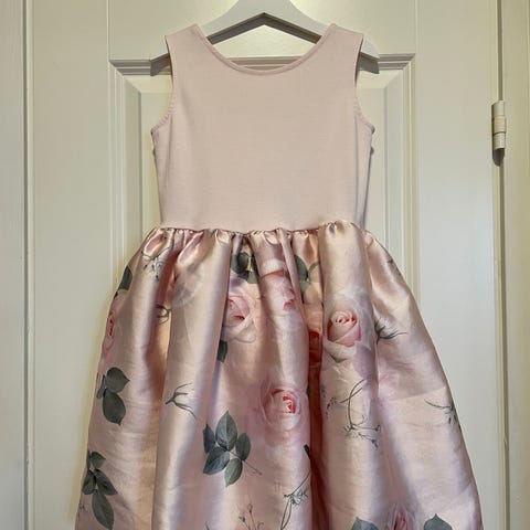 Ihana vaaleanpunainen kesäinen mekko. Ostettu meille viime keväänä, mutta olikin liian pieni joten jäi käyttämättä, virheetön kunto. Ei ole myöskään pesty. Kangas puuvillasekoitetta, vuori polyesteriä. Savuton ja eläimetön talous.