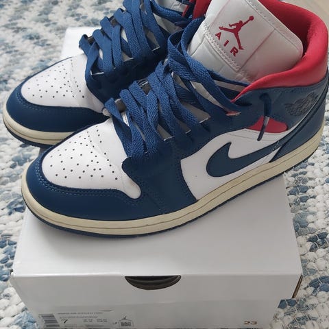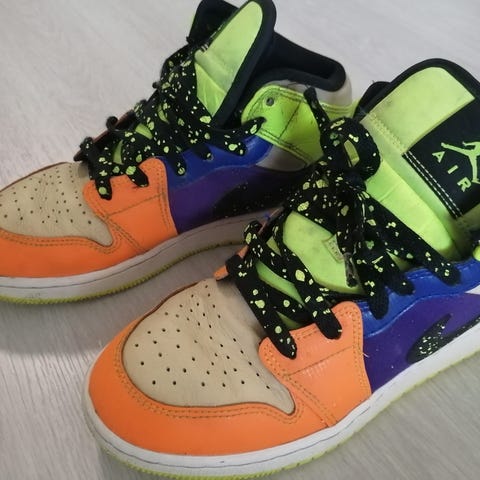 Paljon käytetyt Air Jordanit. Ehjät, pohjien kannoissa kulumaa.