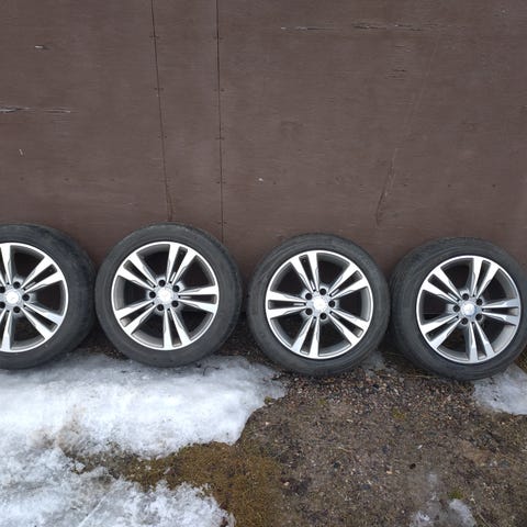 Siistit, ei kanttarijälkiä ja melkein uusi sarja kesärenkaita vanteineen.