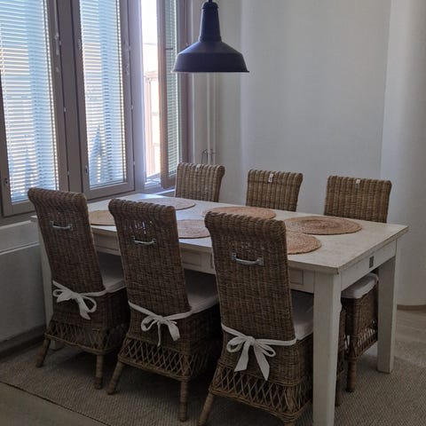 Lankku pöytä ja rottinki tuolit