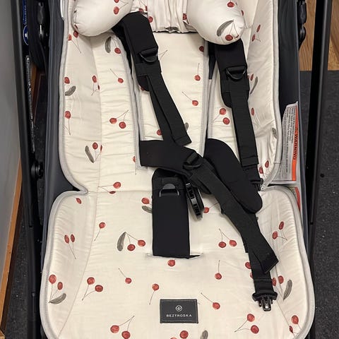 Bugaboo-rattaiden istuinpehmuste, jossa toinen puoli on vaaleaa lampaankarvaa ja toinen puoli harmaata kangasta. Konepestävä. Vähän käytetty ja siisti. Emme ole itse pesseet koneessa kertaakaan, vaan tuulettaneet tarvittaessa ulkona.