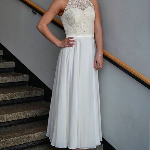 Kerran käytetty vaaleanharmaa hääpuku kokoa 46. Puku on ostettu VIP-iltapuku liikkeestä ja on pesetetty pesulassa käytön jälkeen. Saa tulla sovittamaan.