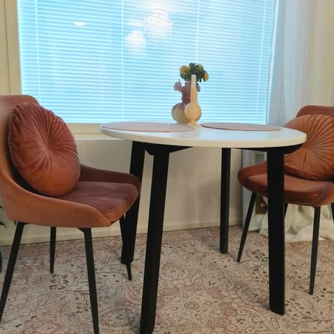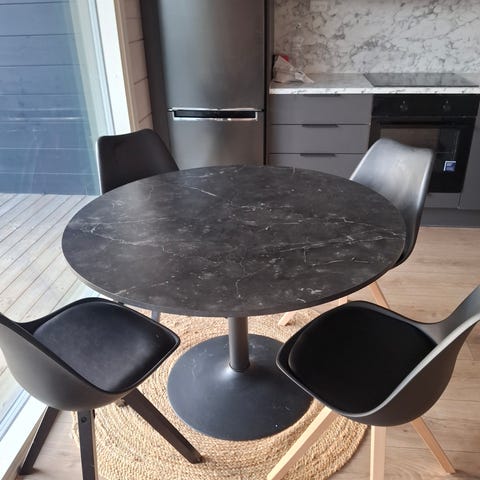 Pyöreä pöytä ja neljä tuolia