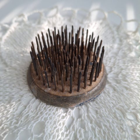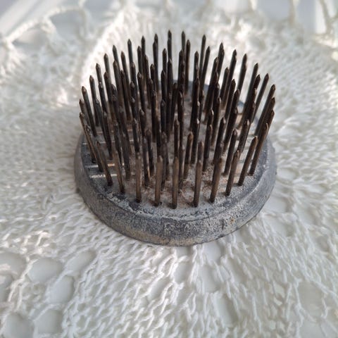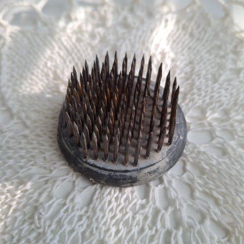 Ikivanhat megapainavat 40 tai 50 luvulta - messinkiset piikit pitävät toki maljakoissa kukkasi toivomassasi asennossa, puhutaan sitten kuiva- tai tuorekukista, mutta näitä käytetään nyt valokuvapidikkeinä trendikkäissä sisustuksessa.