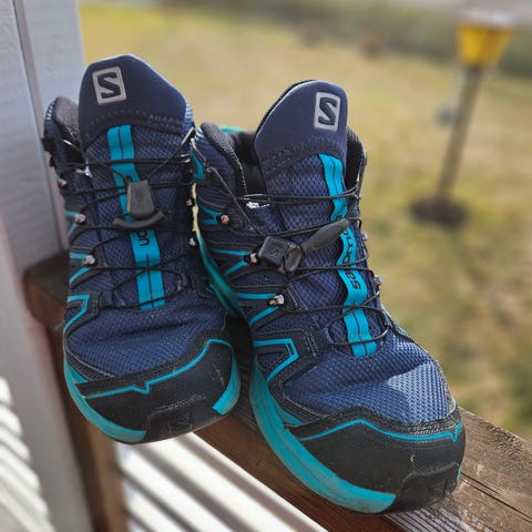 Vaelluskengät, koko 39. Väriltään harmaa ja pinkki, matalavartinen malli. Kengissä on karkea, kuvioitu ulkopohja, joka on suunniteltu vaellukseen ja ulkoiluun. Nauhakiinnitys ja vahvistetut osat sivuilla ja kannassa tukevat jalkaa epätasaisessa maastossa. Sopivat vaellukseen, retkeilyyn ja muuhun ulkoiluun.