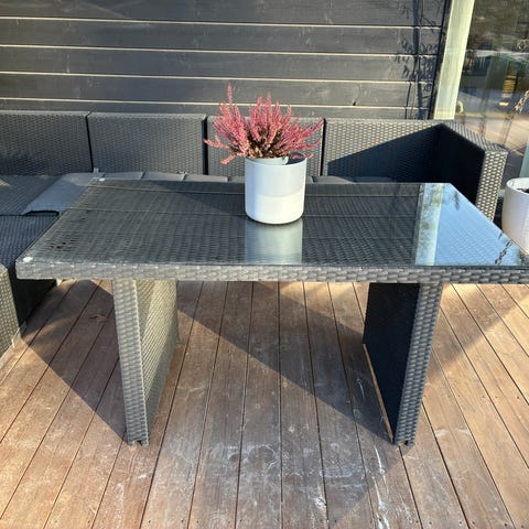 pyöreä lasinen pöytä ja varjo