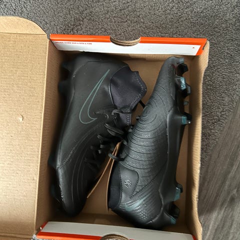 Nike Phantom GX II Club FG/MG jalkapallokengät. Koko EU 40,5 (UK 6,5, US 7,5, CM 25,5). Väri black/black-deep jungle. Nappulakenkä kiinteällä FG/MG-ulkopohjalla, joka soveltuu luonnonnurmelle ja monille keinonurmialustoille. Päällinen synteettistä materiaalia, nauhakiinnitys. Malli suunniteltu jalkapalloon ja muuhun nurmialustalla pelattavaan pallopeliin.