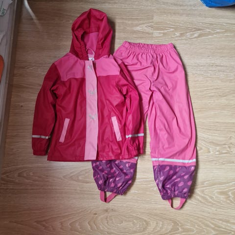 Myydään Lupilu-merkkinen, fleecevuorillinen sadetakki sekä henkselihousut koossa 122/128cm. Vähän käytetyt ja täysin ehjät, mutta takin selkäpuolella joku värjäymä, joka näkyy kuvassa.