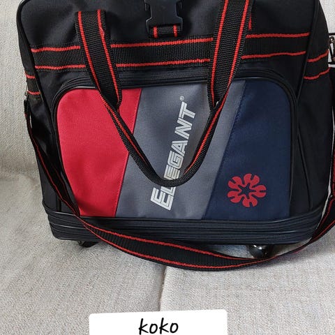 Mitat 116 x 60 cm. Taskut; 1 iso ja 4 pienempää.