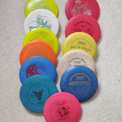 Kolmas rivi: C-line dd3, Innova airforce 2012 pro master Ken Climo wraith, halo Mako3, Whistler’s bend doubles shootout 2024 popcorn, evolution mutant