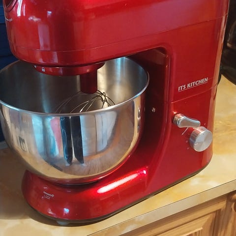 Uuden veroinen tyylikkään punainen yleiskone myynnissä. Pakettiin kuuluu 2 ruostumatonta teräskulhoa 4,8 ja 2,9 litraa sekä pallovispilä, lisäosa leivonnaisille, taikinakoukku ja suoja. Laitteessa kestävä alumiininen painevalettu runko.