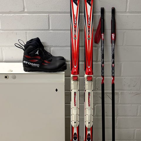 Käytetyt mutta oikein toimivat menopelit nuorelle hiihtäjälle.