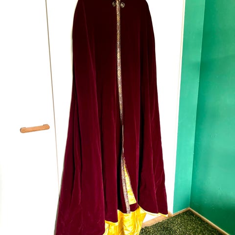 Pitkä malli, jossa on huppu ja edessä kulkeva vaalea reunus. Sopii esimerkiksi naamiaisasuun, cosplay-käyttöön tai muuhun pukeutumiseen.