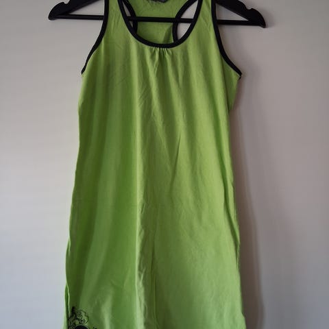 Beige, pitkänmallinen toppi kokoa 152/158 cm. Selkäosa on ns. painijanselkä. Kainalossa hieman tummentumaa, ei näy käytössä. 95% puuvilla.