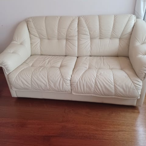 Aitoa nahkaa, Suomi valmisteinen 2 hengen sohva. Myydään pois toisen tieltä. Voin tuoda paikanpäälle korvausta vastaan.