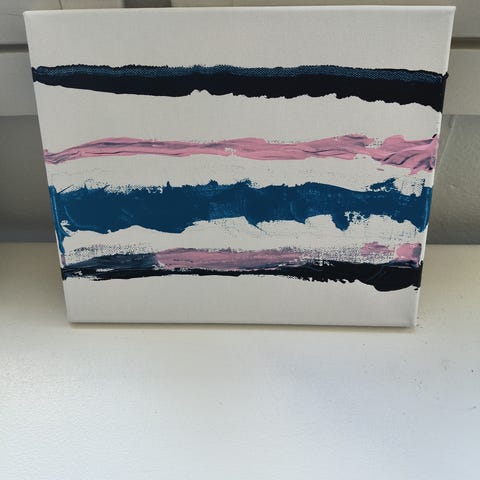 Abstrakti maalaus akryyli kankaalle sininen vaaleanpunainen