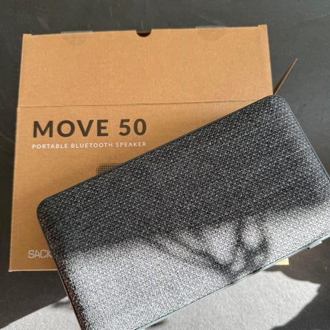 Kaiutin toimii akkua lukuunottamatta hyvin. Mukana laturi ja muut kuvassa olevat asiat.