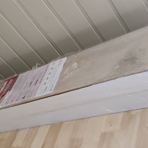 Melkein täysi paketti laminaattia. Uutta, mutta säilötty pitkään; pölyä jne