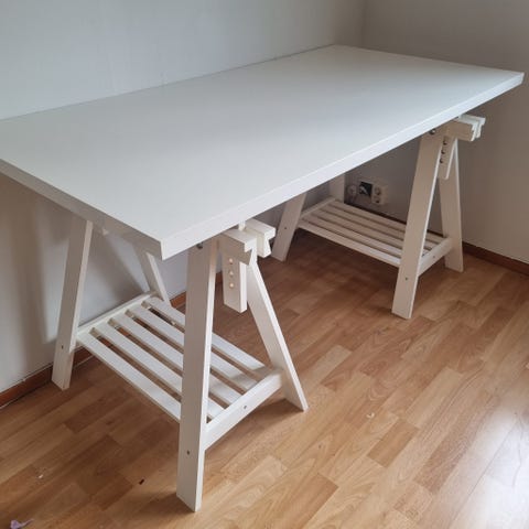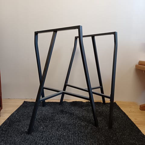 Käytetty hyvä kunto. Elämän jälkiä näkyvissä, mutta edelleen siistit. Jalkoihin tehty itse reiät kansilevyn kiinnittämiseksi.