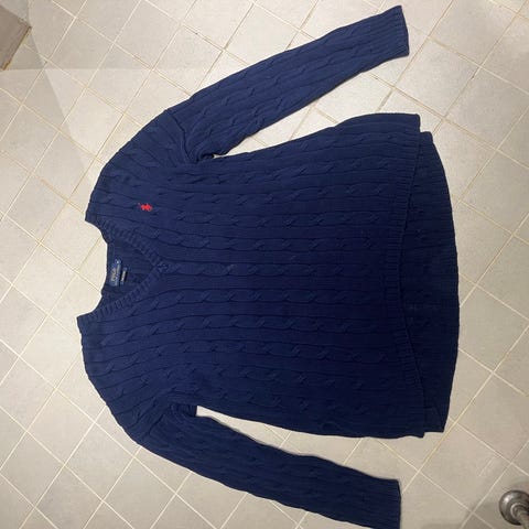Polo Ralph Lauren naisten neule. Koko S. Materiaali villaa. Väri tummansininen. Neuleessa on kaareneulepinta ja V-pääntie. Rinnassa pieni brodeerattu Polo Ralph Lauren -logo. Pitkät hihat ja vartalonmyötäinen malli. Soveltuu arki- ja toimistokäyttöön sekä kerrospukeutumiseen viileämpiin säihin.
