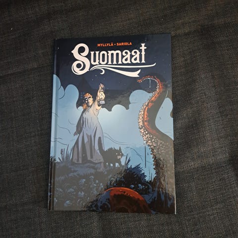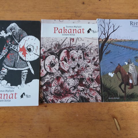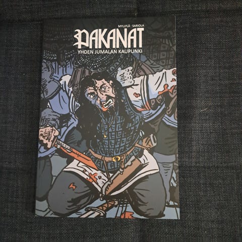 Pakanat sarjakuva-albumi. Mustavalkoinen kansikuva, jossa on fantasiateemainen piirros. Pehmeäkantinen kirja, suomenkielinen sarjakuva.