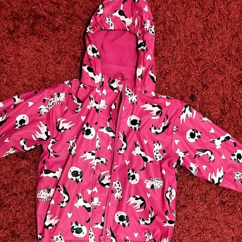 Peuhu merkkinen siisti, tahraton sadeasu.