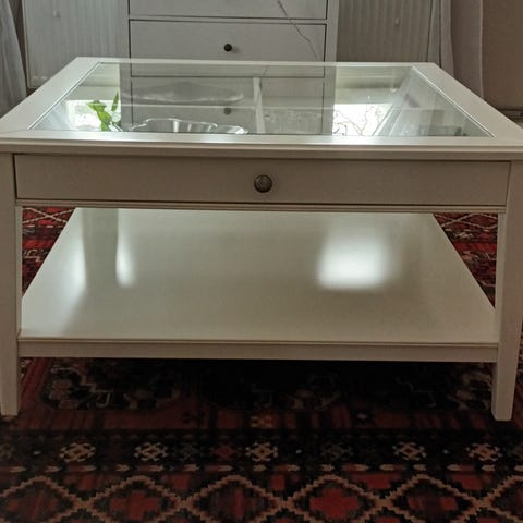 Myydään Ikea lack sohvapöytä tehty siistimmäksi oikealla lasikannella siistimmäksi.