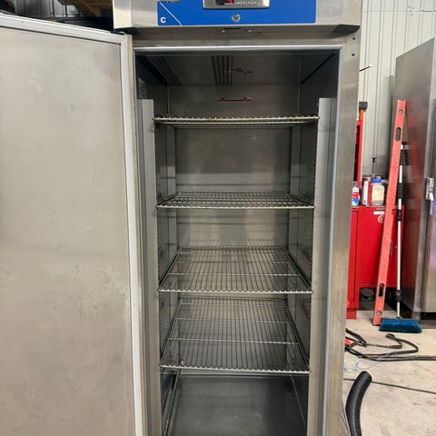 Vapaasti seisova, yksiosainen kaappi ammattikäyttöön. Materiaalina ruostumaton teräs ulko- ja sisäpinnoissa. Kaappi soveltuu elintarvikkeiden tai juomien kylmäsäilytykseen esimerkiksi ravintola-, kahvila- tai suurkeittiöympäristössä. Varustelu ja sisätilan hyllyratkaisut voivat vaihdella, joten tarkemmat mitat ja hyllyjen lukumäärä on hyvä tarkistaa paikan päällä.