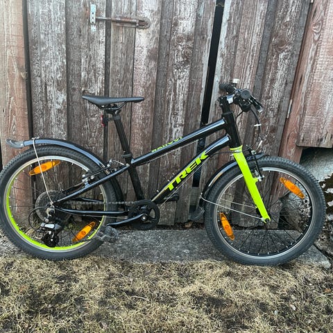 Trek Wahoo lasten polkupyörä 20" renkailla. Rungon pääväri on musta, tehosteväreinä vihreä. Pyörässä on käsijarrut, vaihteet takana, lokasuojat sekä seisontatuki. Satulassa on näkyvissä kulumaa. Sopii lapselle, jolle 20" kokoinen pyörä on ajankohtainen, esimerkiksi koulu- ja harrastusmatkoille sekä yleiseen ajoon.