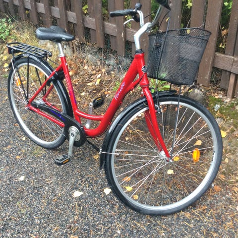 Hyväkuntoinen Naisten polkupyörä olis vailla uutta kotia, renkaat on ihan ok kuntoiset, tästä löytyy jalkajarru sekä käsi jarru eteen.