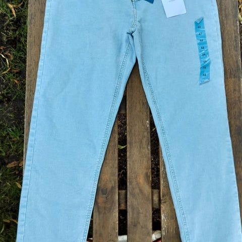 KappAhl vajaamittaiset strechfarkut 44. Vetoketjut lahkeissa.