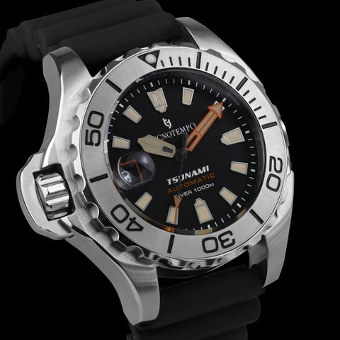 Tecnotempo on italialainen brändi ja rekisteröity tavaramerkki.Tecnotempo on italialainen brändi, joka yhdistää laadun ja muotoilun jokaisessa kellossa niille, jotka arvostavat ajattoman tyylin.Jokainen malli, korkealaatuisista komponentteista valmistettu, edustaa täydellistä liittoa perinteen ja innovaation välillä niille, jotka elävät aikaa tyylillä.Tässä huutokaupassa tarjoamme:Tecnotempo Automatic Professional Diver 1000M "Tsunami" - Limited Edition -Kotelo on halkaisijaltaan 43,2 mm (kruunun ulkopuolella) ja 16 mm paksu sekä noin 150 g painavaUusi ja 2 vuoden virallinen takuuTecnotempo-kello on valmistettu käyttämällä ensiluokan komponentteja:316L ruostumattomasta teräksestä valmistettu koteloLuotettava Japanin automaattikone Seiko nh35 (24 jalokiveä, 41 tuntia tehovara sekä maksimikohdakkaus)Yhdensuuntaisesti sinivihreä bezelSininen/musta kellotauluDate (voidakseen mahdollisesti vahingoittaa kellon mekanismia, älä vaihda päivämäärää käsin kruunulla, jos kellon aika on välillä 20:00–03:00, tämä on sääntö kaikille päivämäärällisillä kelloin)-hohto indeksit ja osoittimet pimeässä1000 metrin vettä kestäväAutomaattinen helium release -venttiiliSafiirin kristalliMukava musta kumi-nyöritysRAJOITETTU ERÄ 300 KAPSAÄKruunun kiinitys 9 kohdassaKotelon halkaisija: 43,2 mm ilman kruunua (52,2 mm halkaisijaltaan kruunun ja helium-venttiilin kanssa)Kotelon paksuus: 16 mmNauhavaihtoehto: 22 mmVesitiiviys: 1000 metriä (100 ATM)Kellon kokonaispituus noin 25 cmPaino: noin 150 gLaatikko, yleinen käyttöohje (englanti/italia), 2 vuoden virallinen takuu (laatikon väri tai tyyli voi poiketa valokuvasta, riippuen toimituksen hetkellä saatavuudesta).Tavara pakataan huolellisesti ja lähetetään Italiasta kuriiripalvelulla (seurattavissa ja vakuutettu).