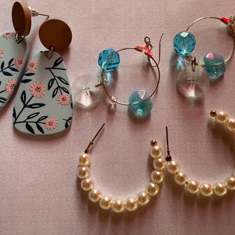 Myydään viisi paria korviksia. Vanhoja mutta käyttämättömiä, korumetallia.